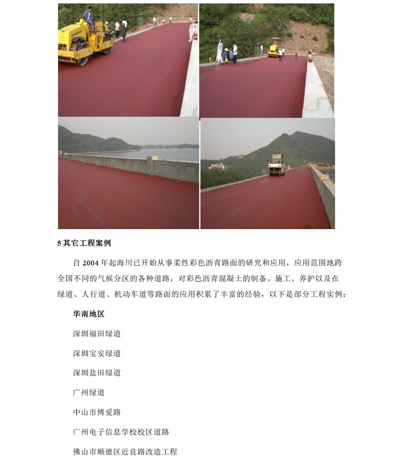 簡介:彩色瀝青(qing)混凝土路(lu)面是(shi)彩色路(lu)面的重要組成部(bu)分(fen),其具有(you)舒適度高、色彩鮮艷、路(lu)用性能(neng)優良的特點(dian),目前(qian)在路(lu)面彩化技術中占據(ju)主要地位(wei)。